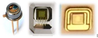 Figure 1. VCSELs in TO can with MPD (left), array on PLCC (middle), and on ceramic base (right).